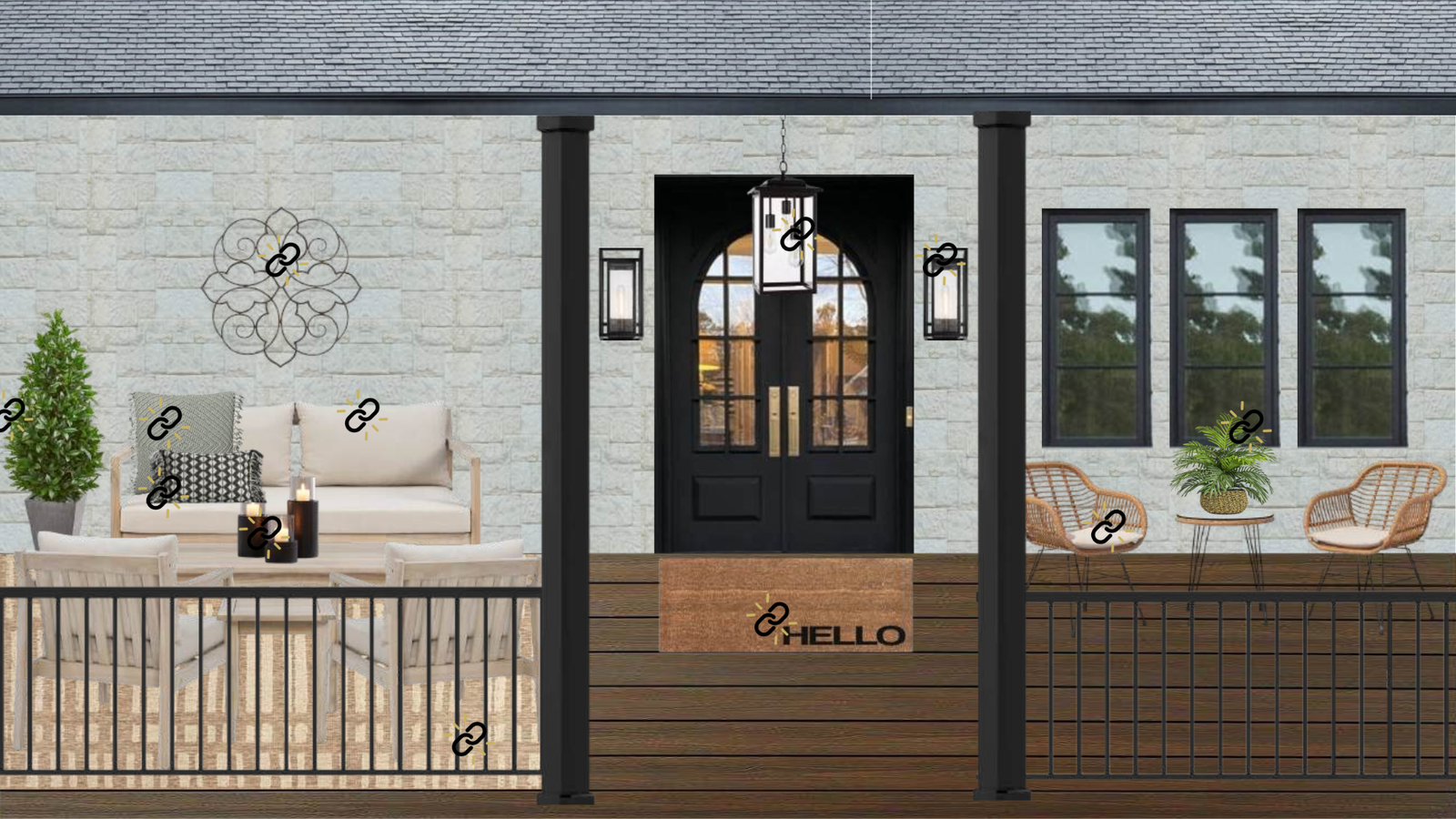 ✨ Elegant design concept featuring a relaxed-yet-polished transitional porch aesthetic