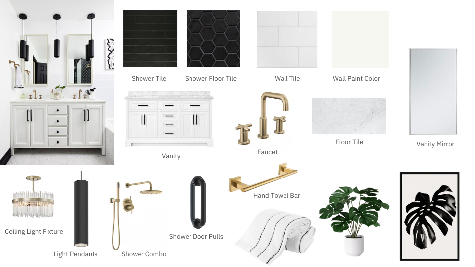 Transform your bathroom with this Transitional Mid-Range Bathroom Renovation design board. Combining traditional elegance with modern flair, this renovation is the perfect blend of style, affordability, and functionality. Includes Design Simulation (2 per purchased board)