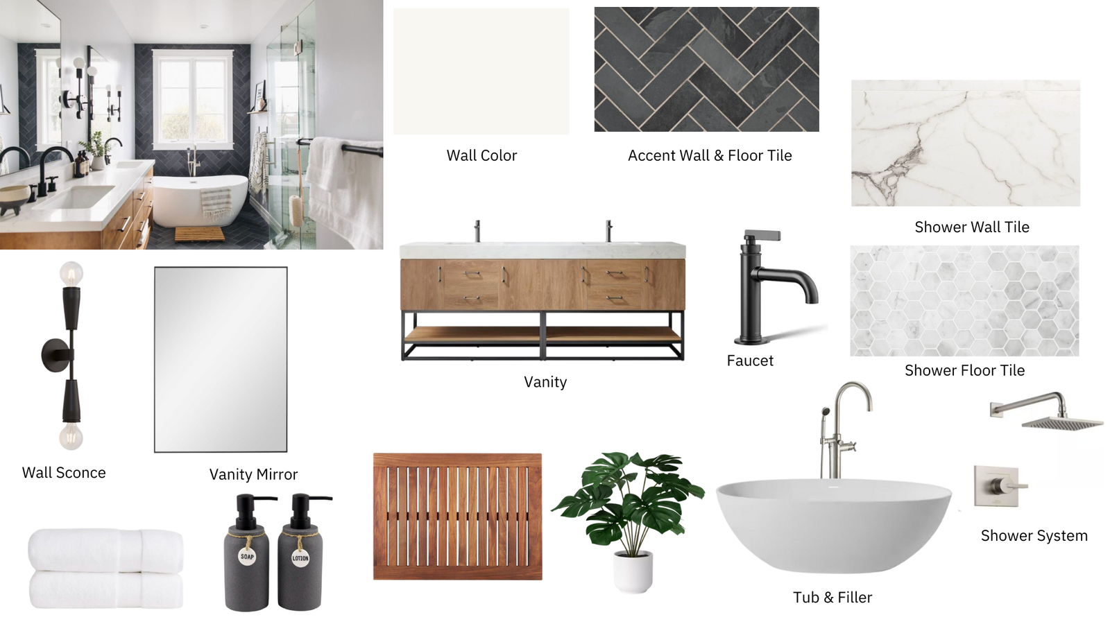 Transform your bathroom with timeless elegance and modern functionality with our Transitional Mid-Range Bathroom Renovation design board. This renovation blends the best of traditional and contemporary design, creating a space that feels classic yet up-to-date. Featuring neutral color palettes, high-quality finishes, and functional storage solutions, this design brings comfort and sophistication into every detail. From stylish vanities and sophisticated lighting to sleek fixtures and durable materials, this bathroom strikes the perfect balance between elegance and practicality—ideal for those looking for a luxurious, but budget-conscious update.